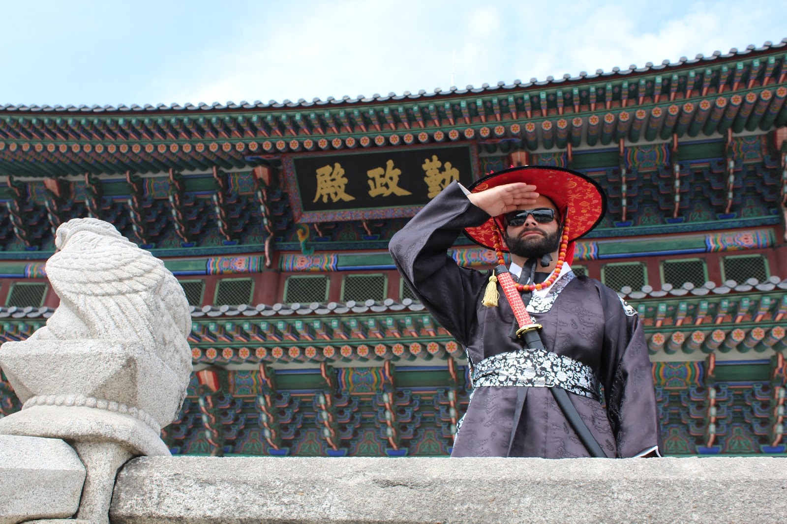 Day 3Another early start. We had a quick breakfast at a coffee shop and got right on the bus to head to Seoul. There's always something going on in the Gwanghwamun area, but today everything was going on. A long stretch of the main street was closed off to traffic for a street art festival, a performance art festival, and they were setting up a big stage in Gwanghwamun square for a kpop concert at night. Our first stop was Gyeongbok Palace - but not before stopping at a hanbok rental shop to get dressed up. The older Korean man at the front desk was so kind, and he seemed to have a genuinely good time helping Matt get his warrior's hanbok together. We spent the next two hours walking around the palace taking pictures of everything. Several people asked to take pictures with/of Matt, and he was even interviewed by some Korean students working on a school project.
